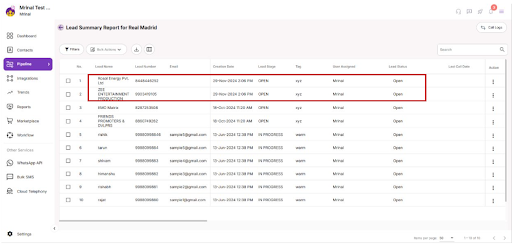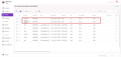 5. You can see that the leads are copied in the destination campaign