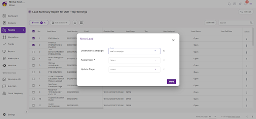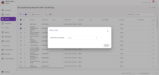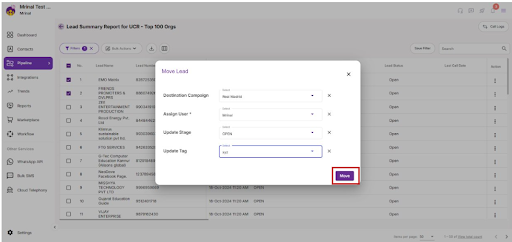 6. Click on the move button to succesfully move the leads