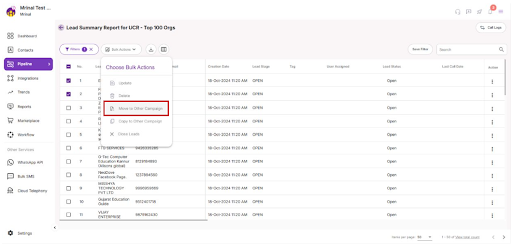 2. after selecting the leads to move, Click on the bulk action button for any one of the campaign