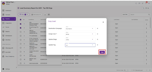 3. then click on the copy leads option