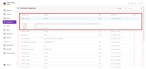 7. The **details** of this integration are present under this integration on **Active Integration page**. Just click on the created integration to **view the details.**