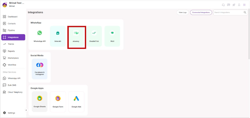 3. Once clicked, then need to click on the **"Aisensy"** option.