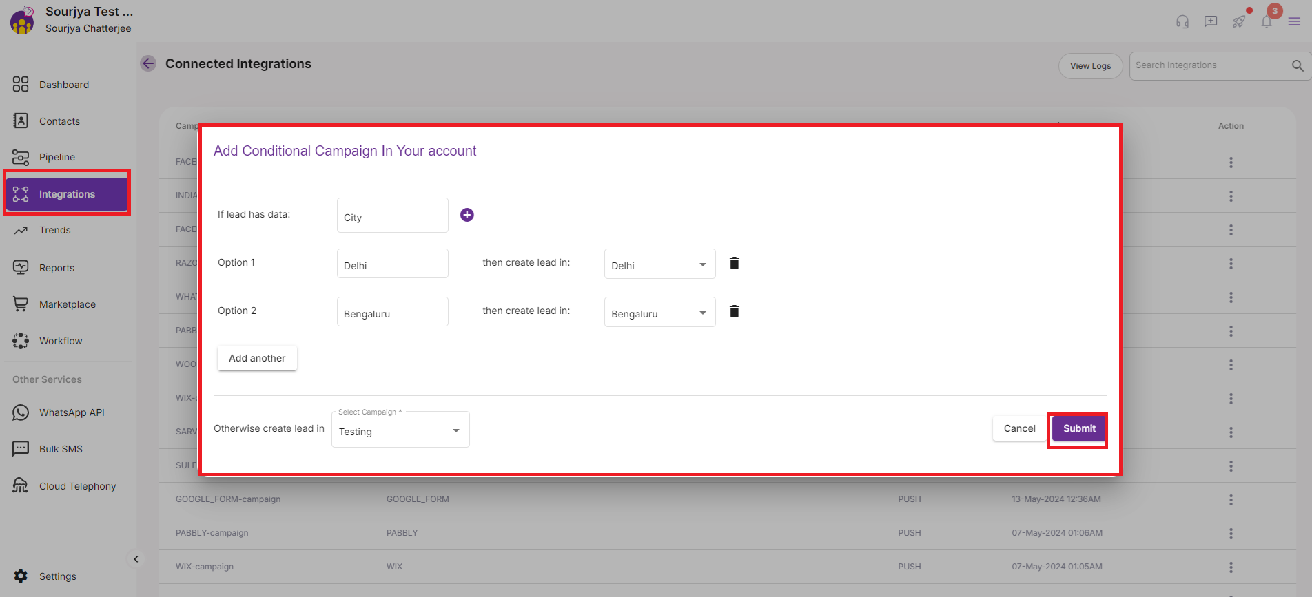 Set the conditions here on this page for segregation of the leads according to the details coming from Facebook.