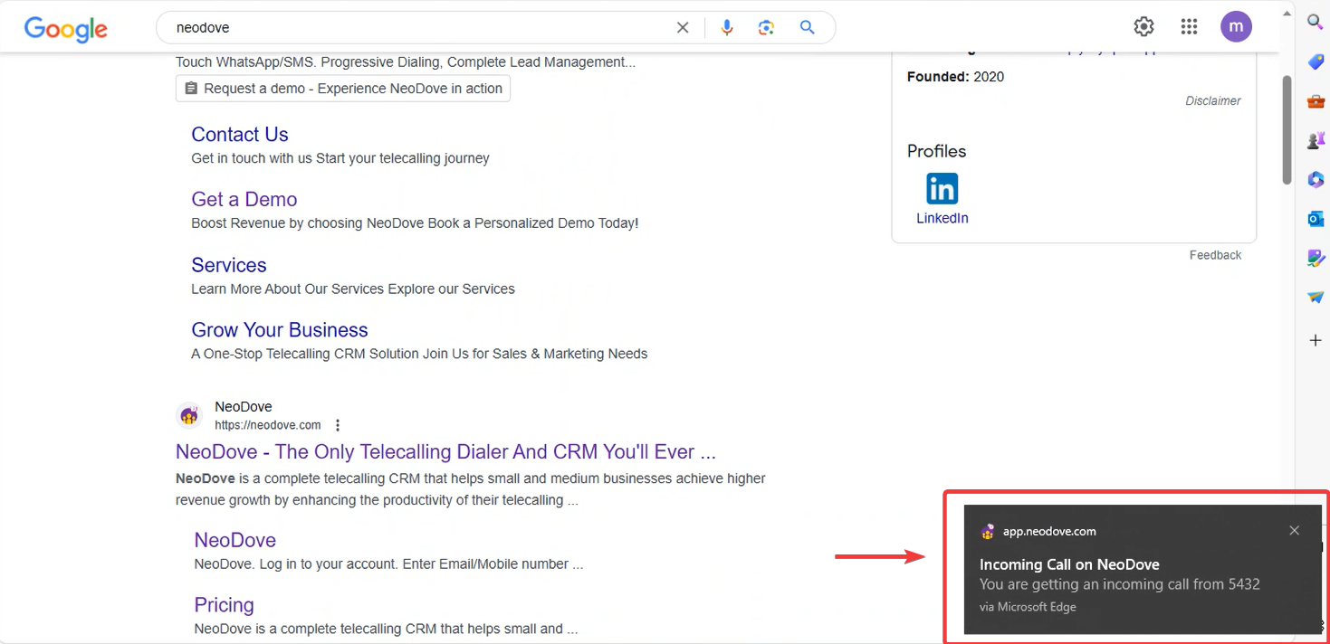 In cases where the user might not be wearing his/her headphone and also not on the NeoDove tab, it would be difficult to know that you have an incoming call from our Cloud Telephony VOIP service which allows you to make outbound and receive inbound calls on your PC itself without a need of a phone.&#x20;
