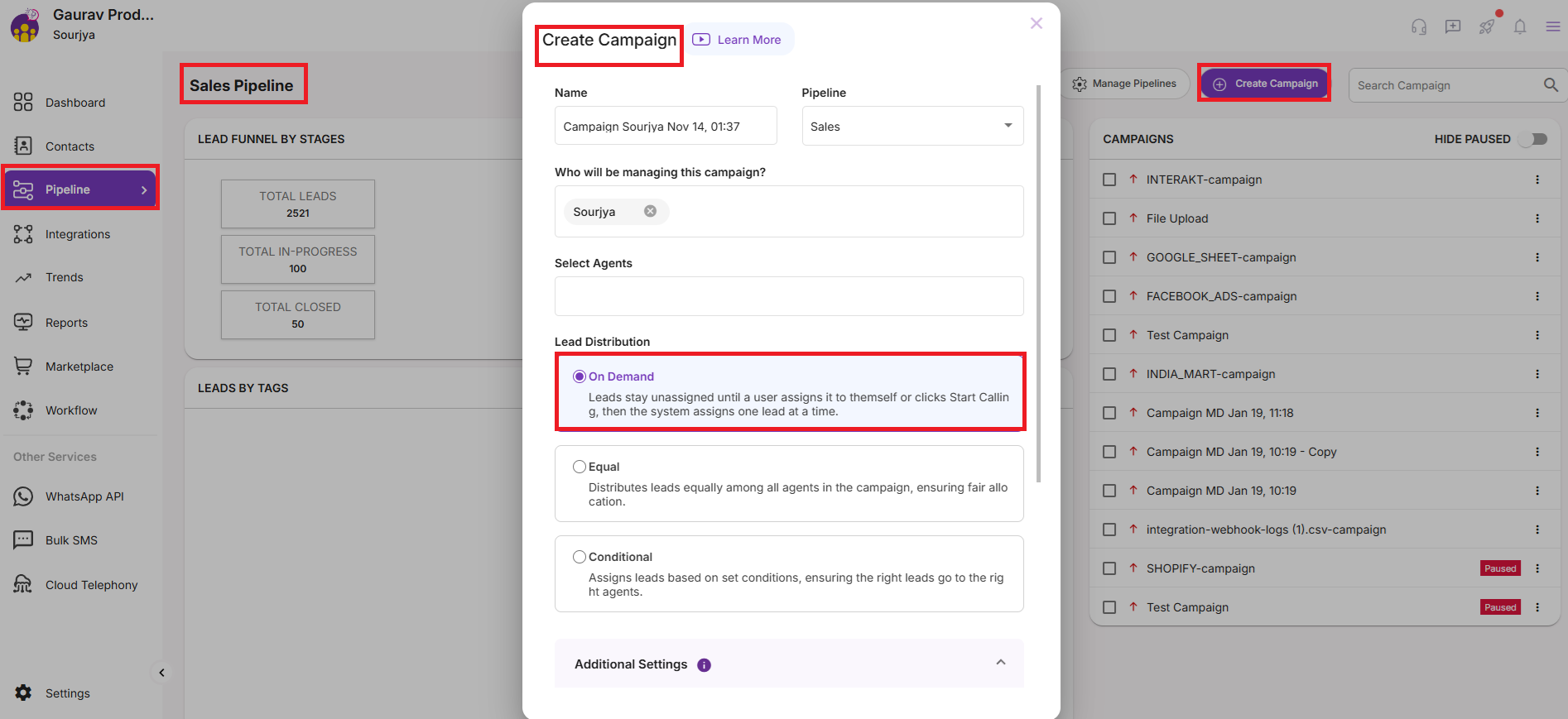 Users can now move leads between campaigns across the Admin Portal, Agent App, and Workflows.&#x20;